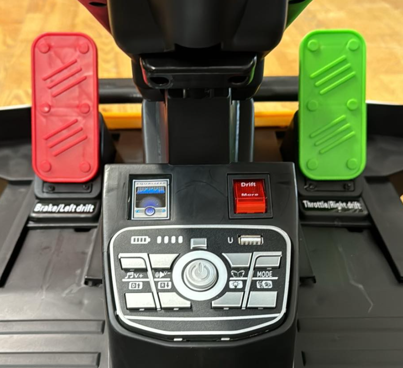 Use the right and left pedals to drift; note that if you use only one pedal, the wheels will turn in opposite directions to provide maximum drift :-)