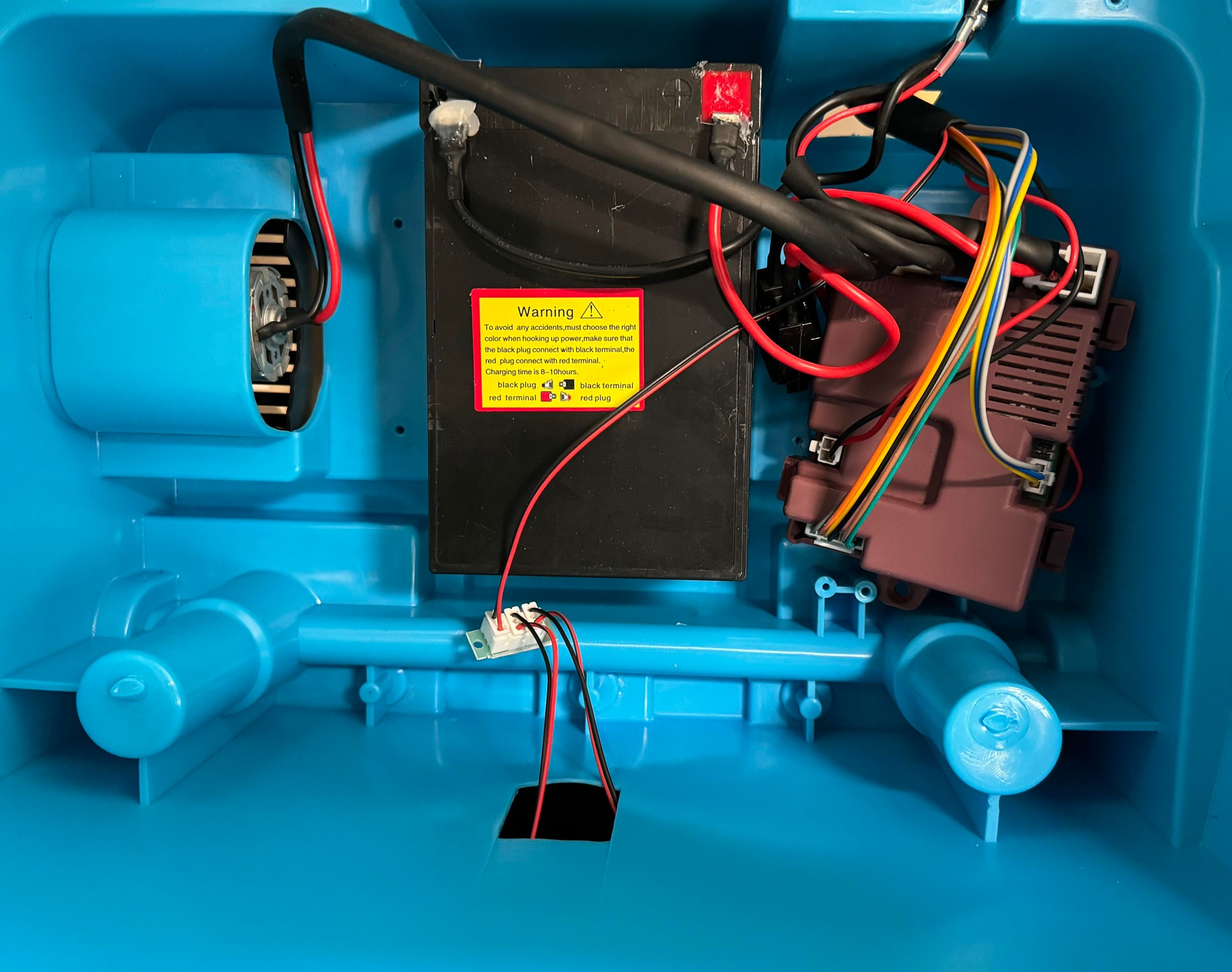 Billeder af batteriet skal gerne inkludere teksten på siden af batteriet, men tag både et billede af hele batterirummet (typisk under sædet) og af batteriet tæt på: